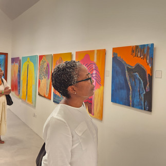 Myrie almost exclusively works on canvas using oils and/or acrylics. With an intuitive style, his work is composed of several layers and varying textures but using a unique marking technique that mimics the movement of rain drops in the wind – fluid, random and fragile yet, together, significant and powerful. In many ways, rain reflects the ebbs and flows, strength and softness, creativity and potential destructiveness of human emotions in the ever-present search for peace and contentment within self and 3 with one another. “My work explores emotions and their internal conflicts, their expressions within families, among friends and inside communities, and the unmistakable influence of the divine, if embraced, in resolving such conflicts and purifying such expressions. The extensive layering, use of color and the markings that reveal the hidden layers also reflect processes of self-discovery where even trauma can bring clarity to purpose and where contentment can be attained even when circumstances are not so clearly understood.”